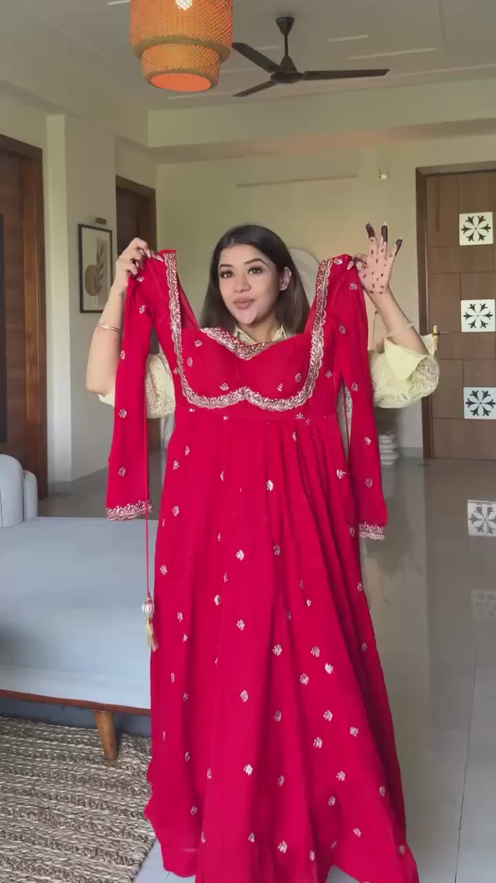 CLASSIC FAUX GEORGETTE PINK ANARKALI WITH THREAD & SEQUENCE WORK