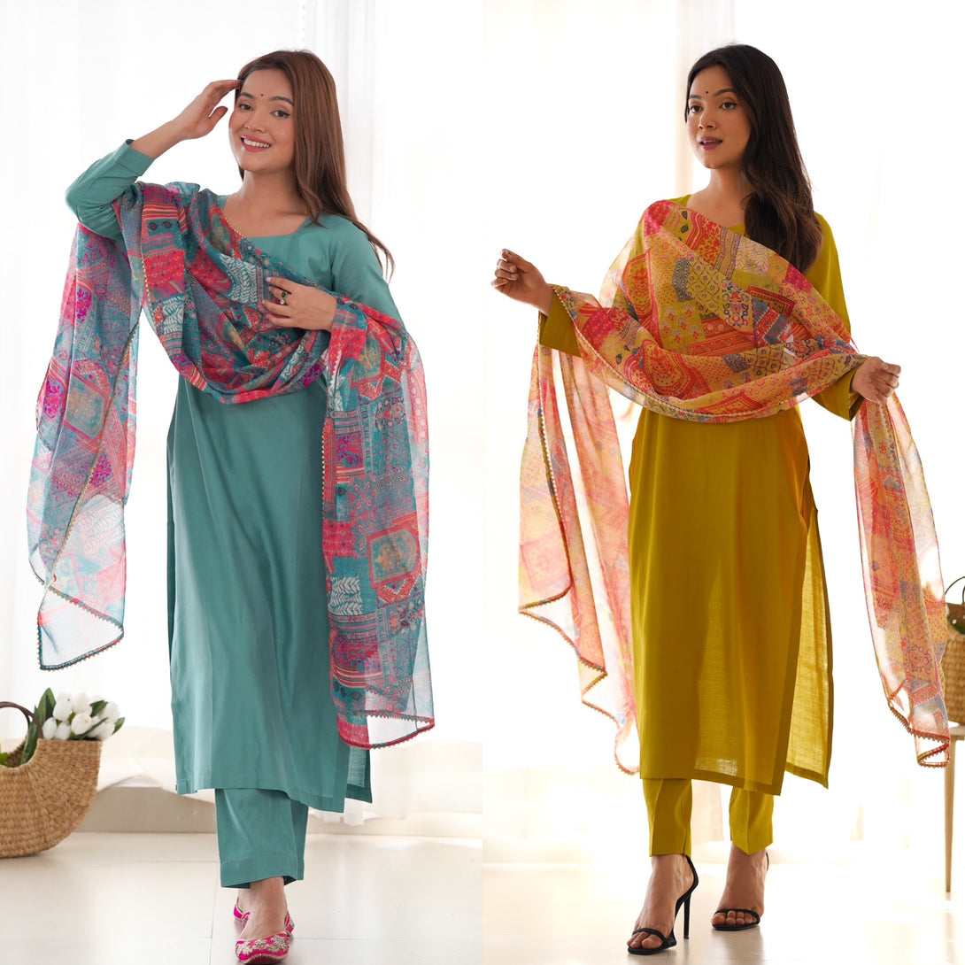 Classic Sunshine – Heavy Viscose Suit with Pant & Dupatta