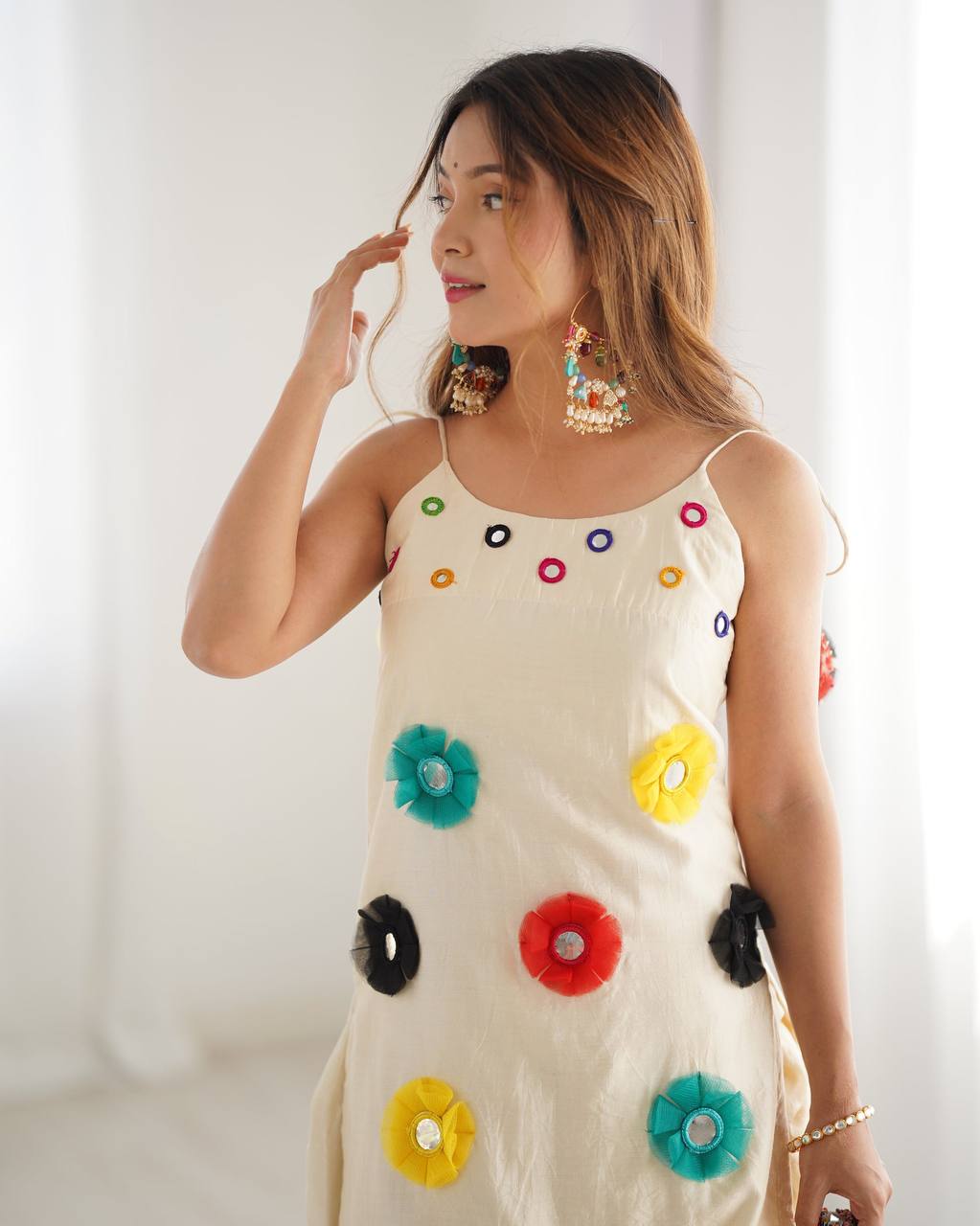 Cream Floral Embellished Patiala Set for Women – Designer Ethnic Wear for Festive & Casual Look