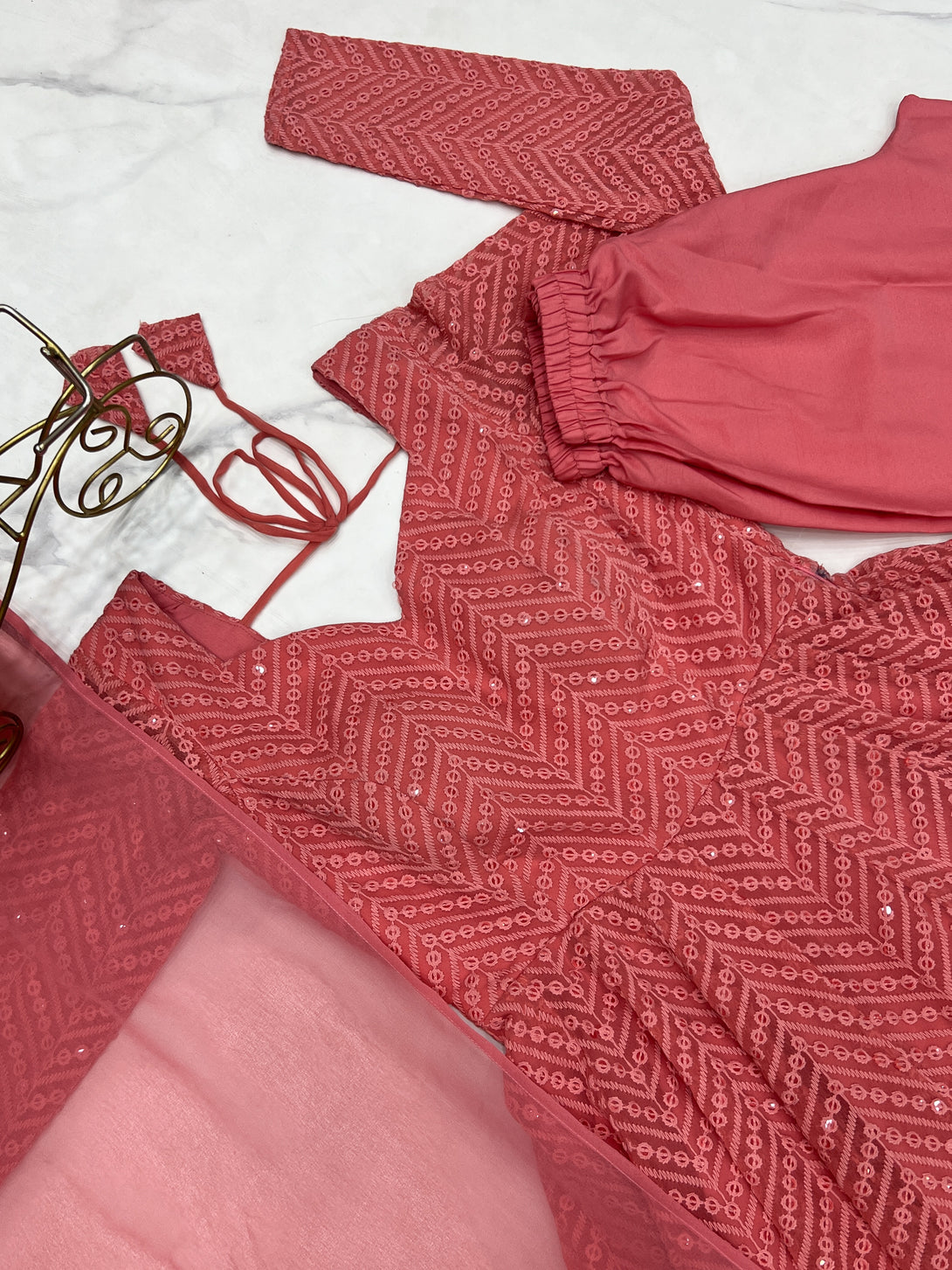 Designer Lucknowi Georgette Flared Anarkali Set with Dupatta – Festive & Wedding Wear Elegance