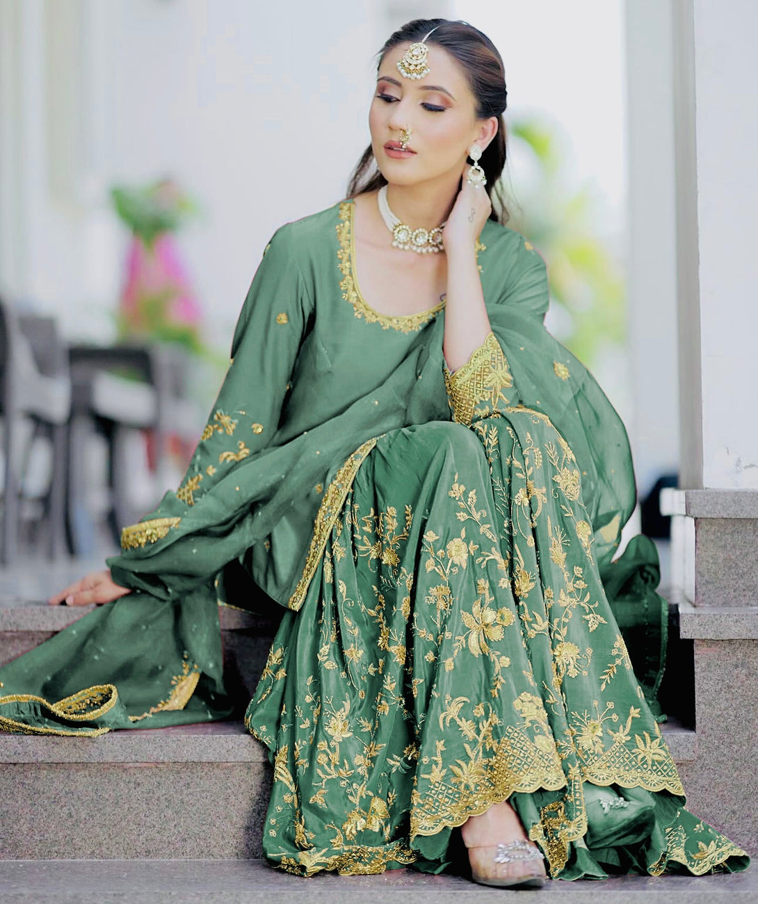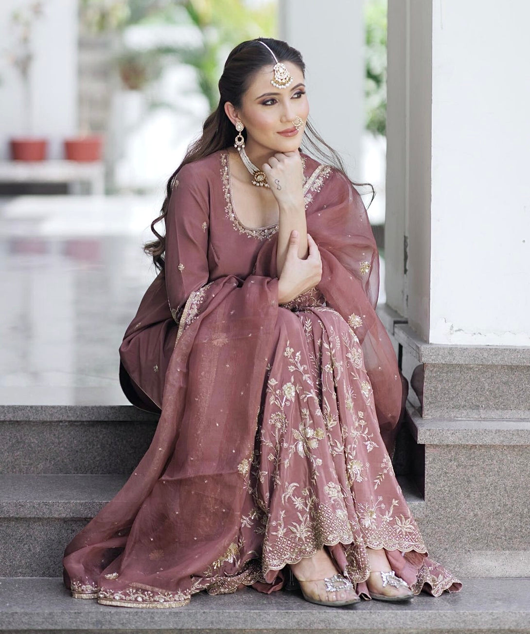 Charming Dusty Designer Sharara Outfit with Mirror Work – Women’s Ethnic Ensemble