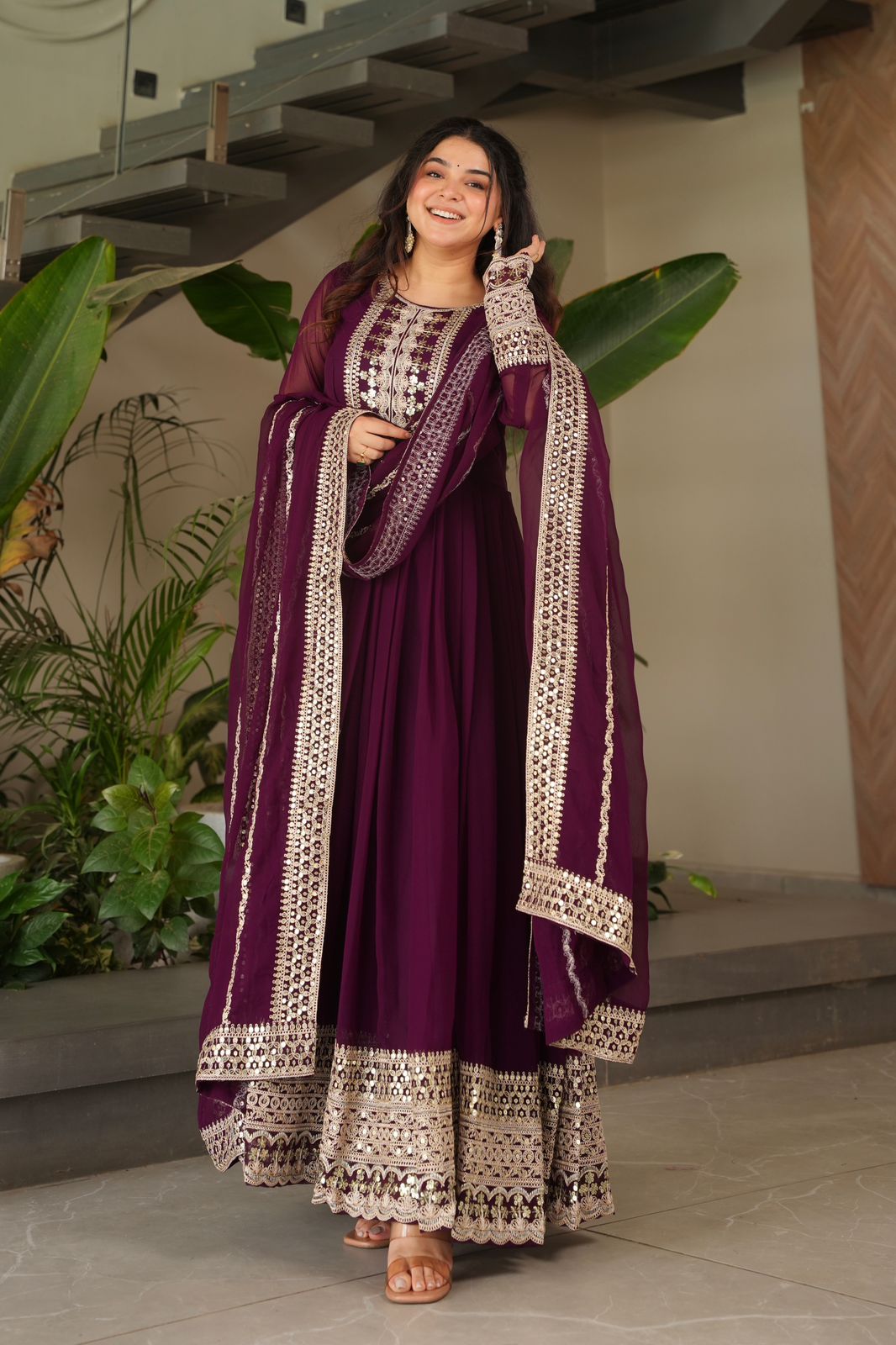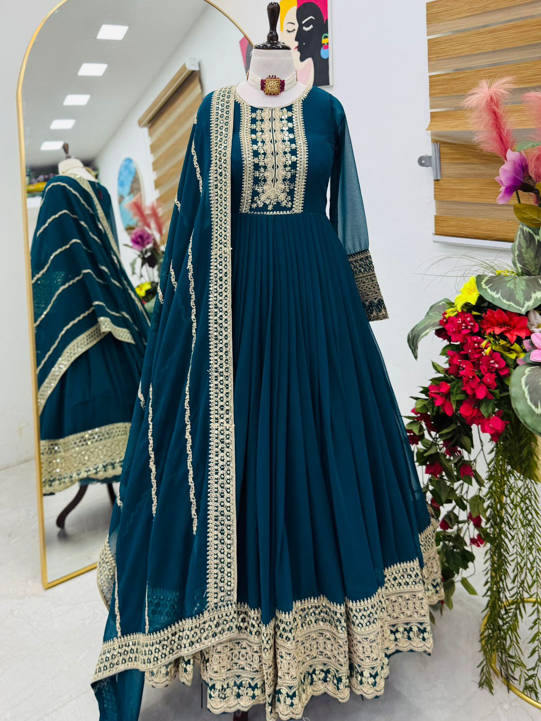 Elegant Traditional Gown with Dupatta - Festive Wear