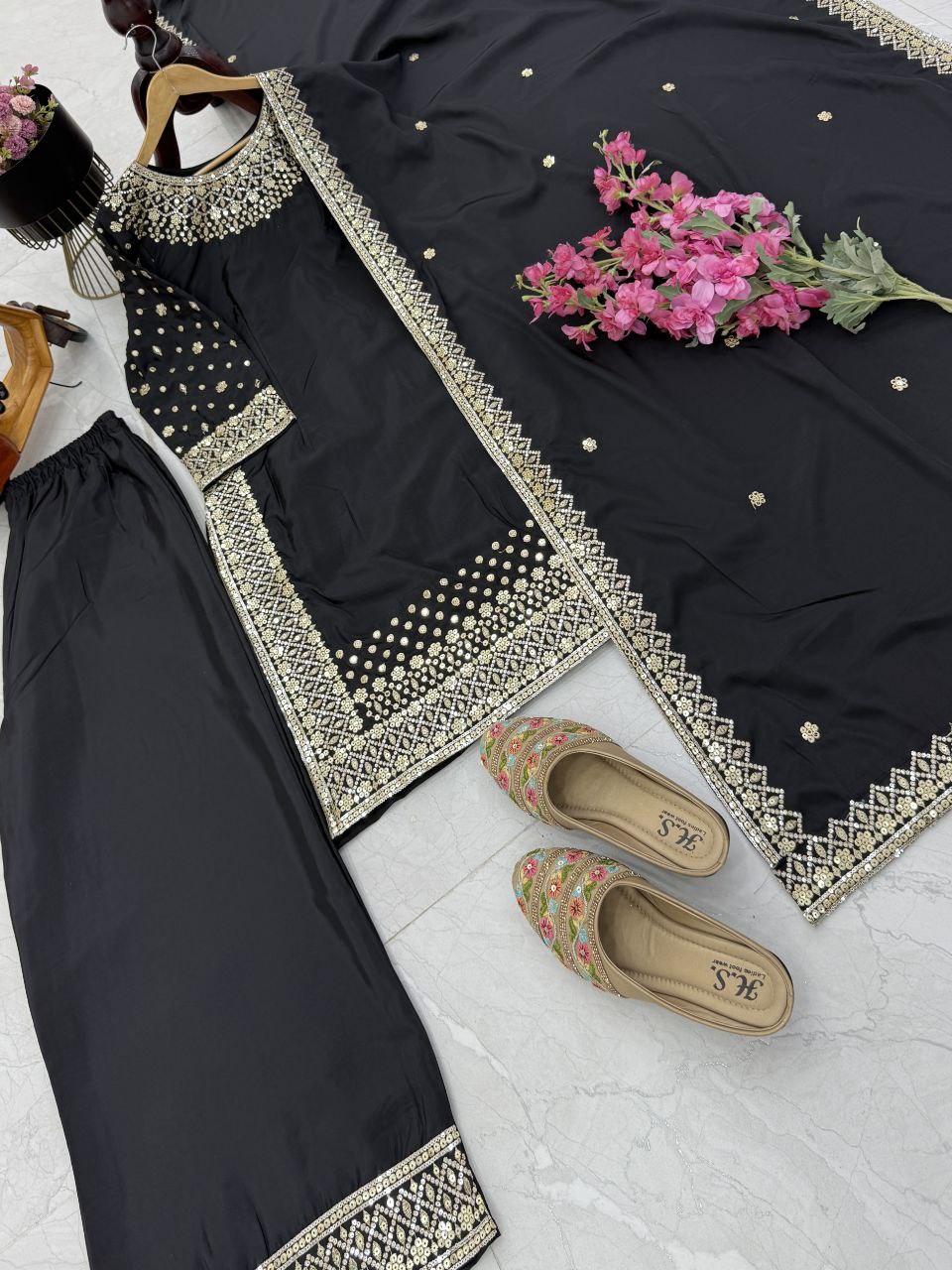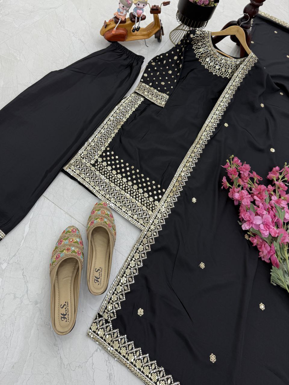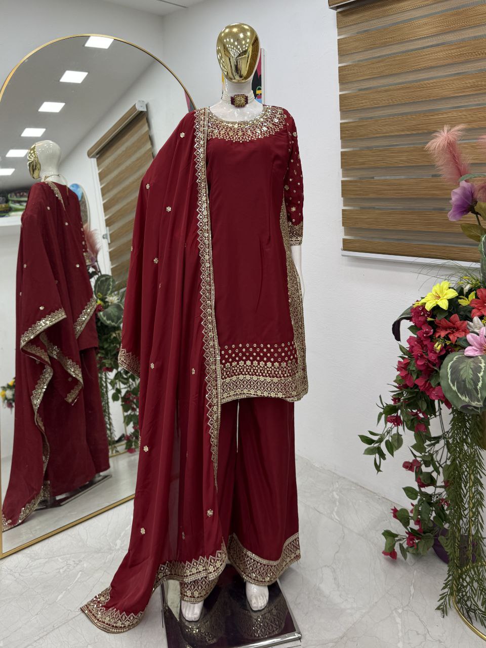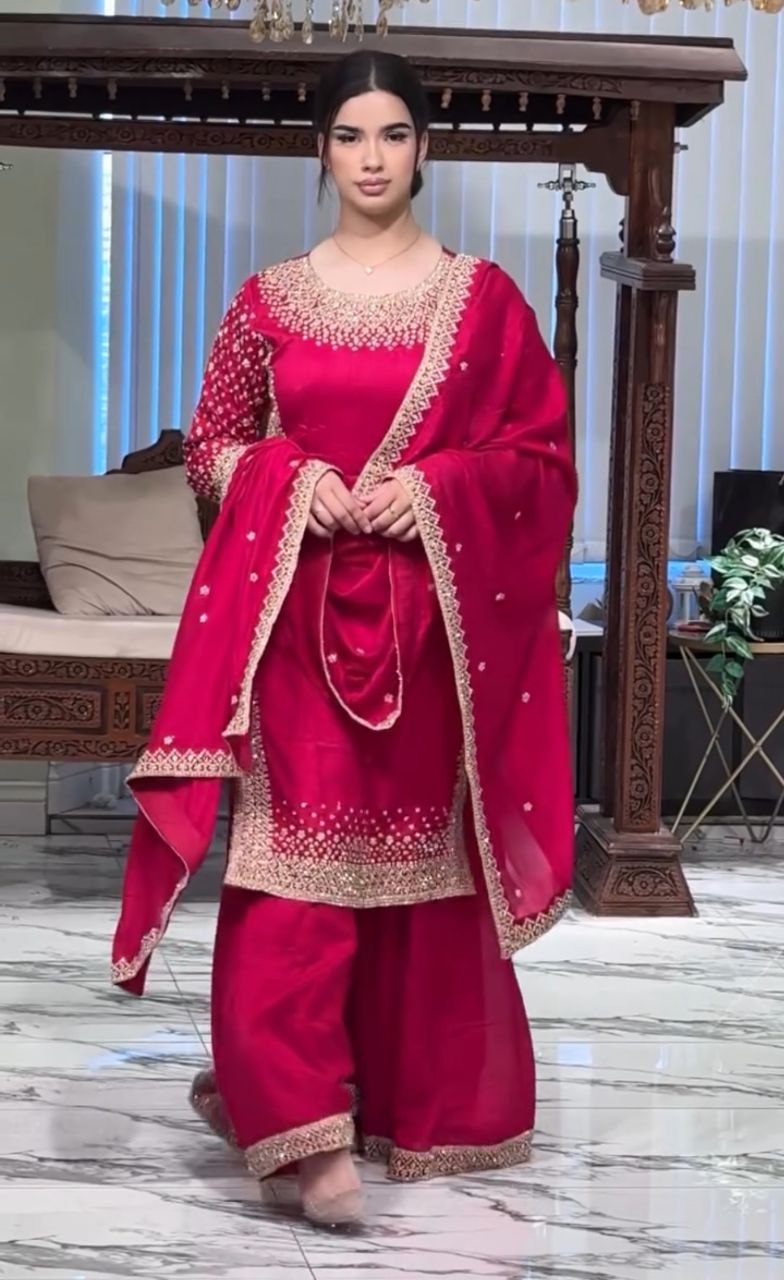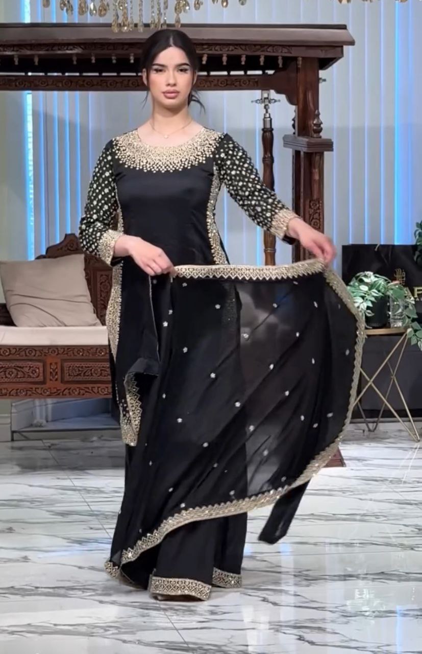 Embroidered Sharara with Contrast Border Dupatta – Luxury Ensemble