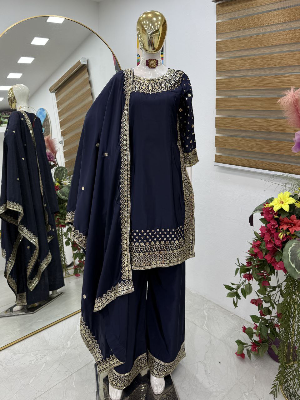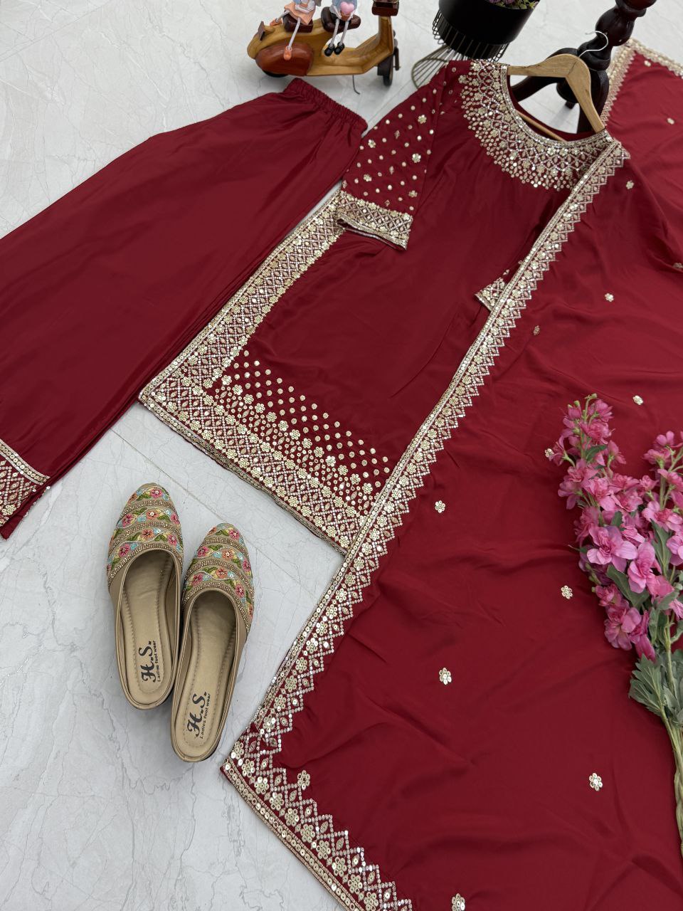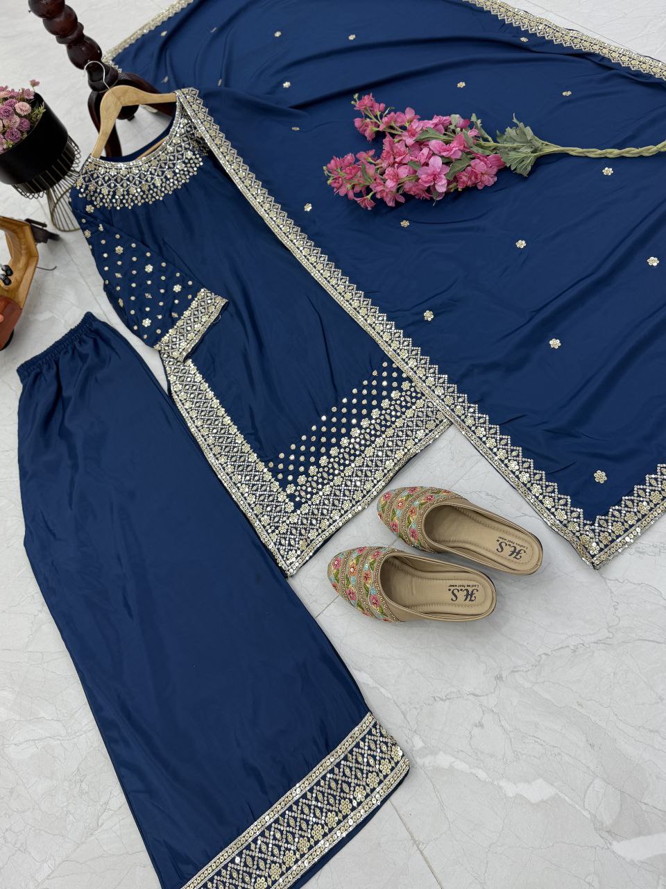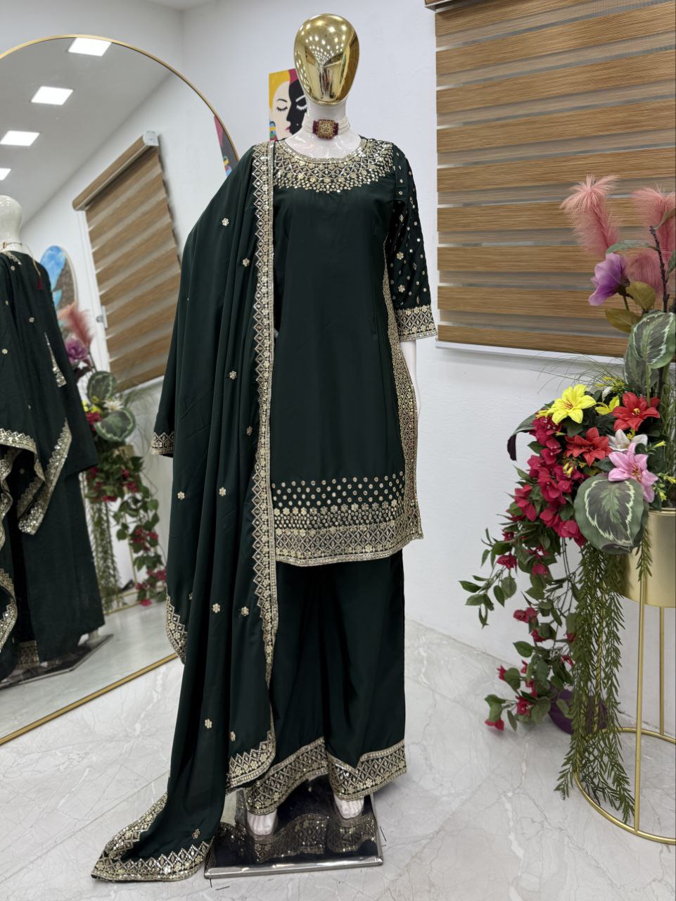Embroidered Sharara with Contrast Border Dupatta – Luxury Ensemble