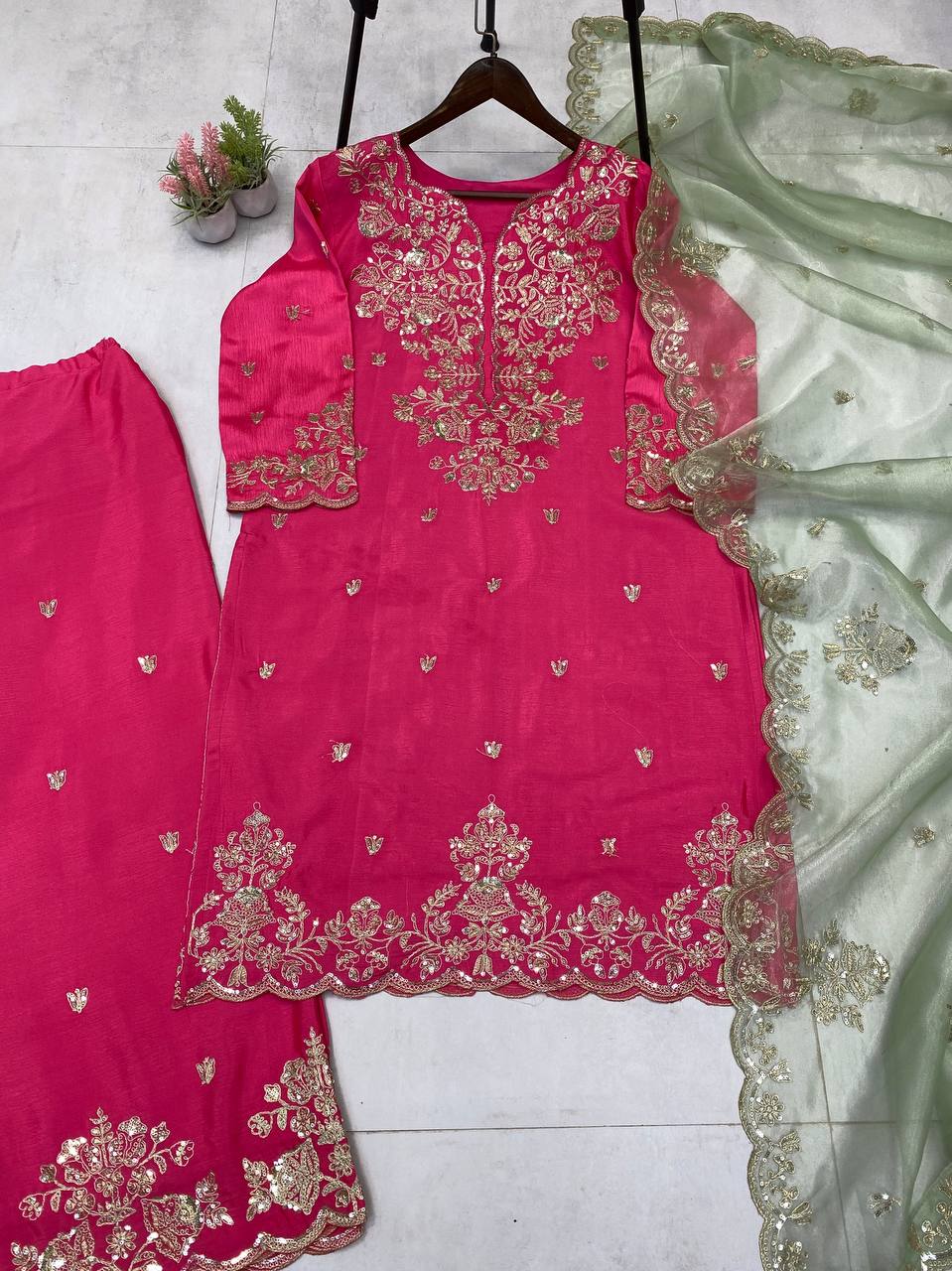 EXCLUSIVE DESIGNER SEQUANCE EMBROIDERY WORKED KURTI, PLAZZO AND DUPATTA