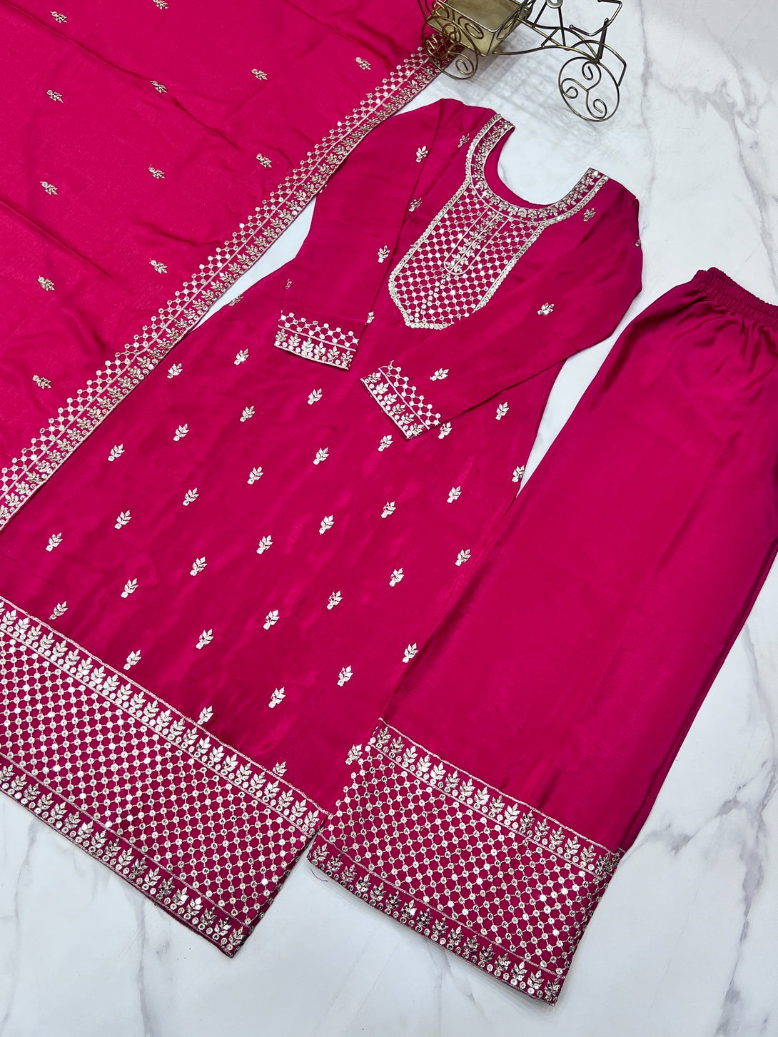 Kripali Pure Chinon Silk Embroidered Kurti Set