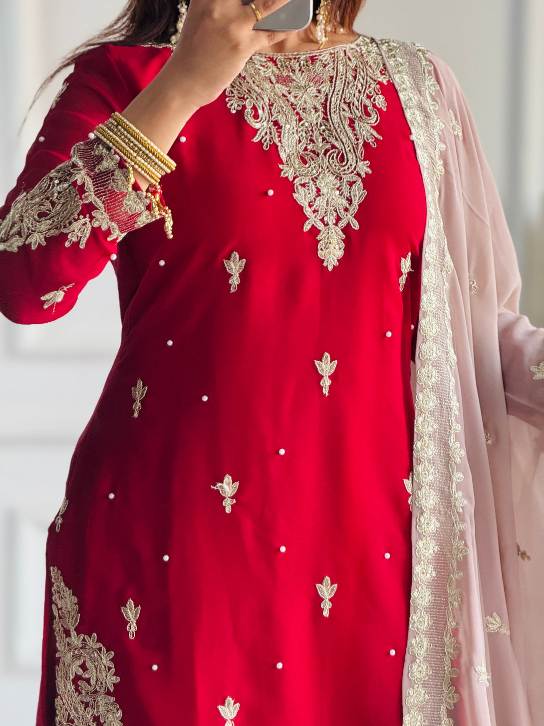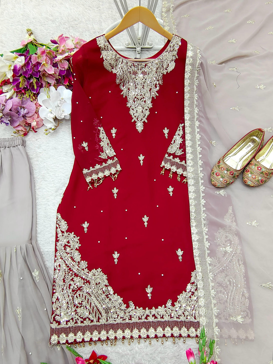 Premium Red and Beige Ethnic Outfit for Special Occasions